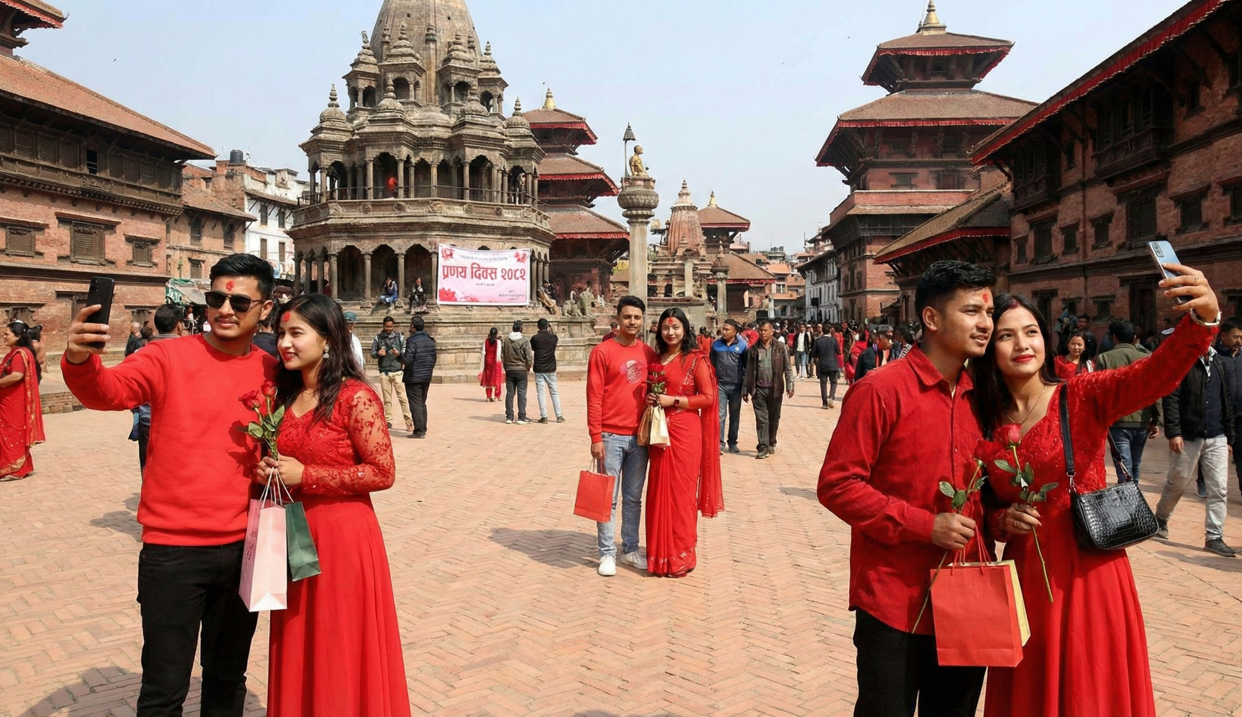 काठमाडौँ, २ फागुन २०८२ (१४ फेब्रुअरी २०२६, शनिबार) – आज १४ फेब्रुअरी अर्थात् ‘भ्यालेन्टाइन्स डे’ (प्रणय दिवस)। नेपालसहित विश्वभर आपसी प्रेम साटासाट गरी यो दिवस भव्य रूपमा मनाइँदैछ। काठमाडौँ उपत्यकाका विभिन्न स्थानहरू, विशेषगरी ऐतिहासिक वसन्तपुर दरबार क्षेत्र र पर्यटकीय केन्द्र ठमेलमा बिहानैदेखि युवायुवतीहरूको बाक्लो उपस्थिति देखिएको छ।